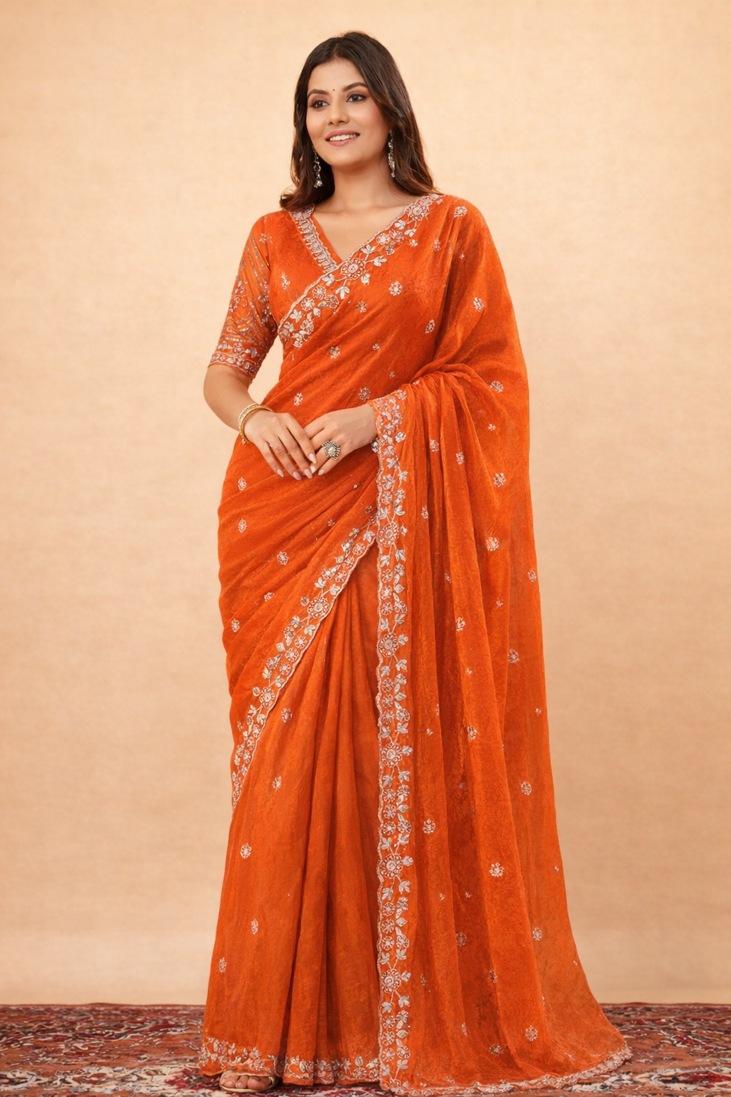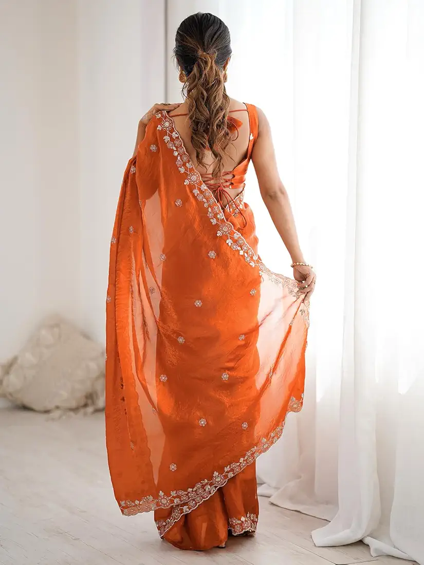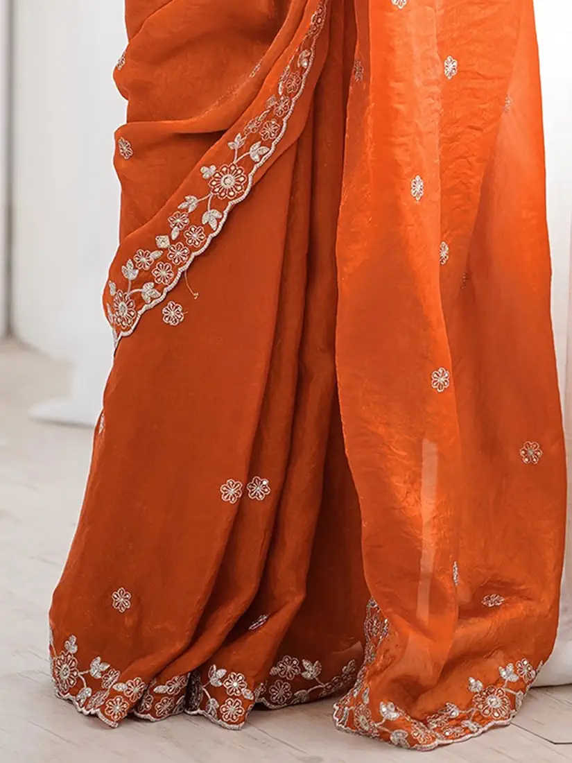 Meticulously crafted, this saree features intricate sequins embroidery along the border, adding a touch of shimmering allure. The fine detailing and high-quality fabric ensure comfort, durability, and a flawless drape that complements every figure. It’s designed to leave a lasting impression, making you stand out wherever you go.
