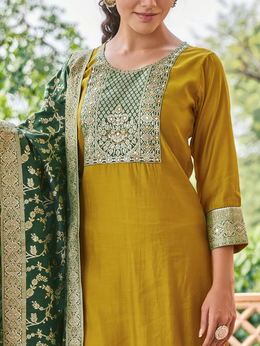 Step into timeless style and unparalleled comfort with our Embroidered Yellow Suit Set for women. Designed to exude sophistication, this suit set is perfect for festive occasions or traditional gatherings, seamlessly blending vibrant hues with intricate embroidery for a look that radiates elegance.