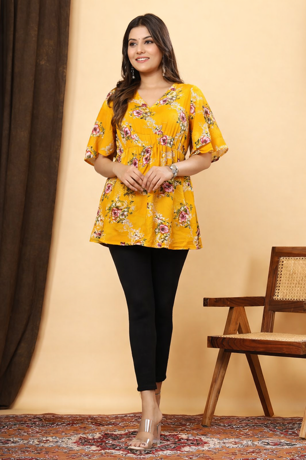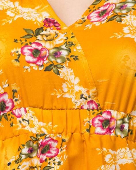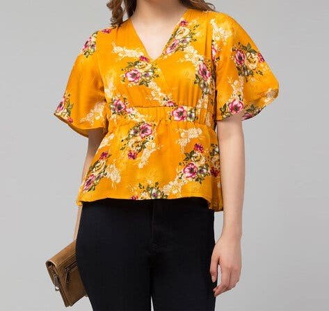 Make a bold fashion statement with our Floral Print Yellow Regular Top for women. This top combines a vibrant floral pattern with a warm, cheerful yellow tone, creating an eye-catching piece that beautifully complements your wardrobe. Designed with comfort and style in mind, it’s perfect for casual outings or relaxed evenings.
