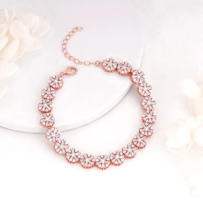 Each bracelet is meticulously crafted to ensure unparalleled quality and durability. The intricate floral design is balanced by sparkling stud details that enhance its appeal. Whether worn solo or paired with other accessories, this stunning bracelet stands out as a definitive statement piece.