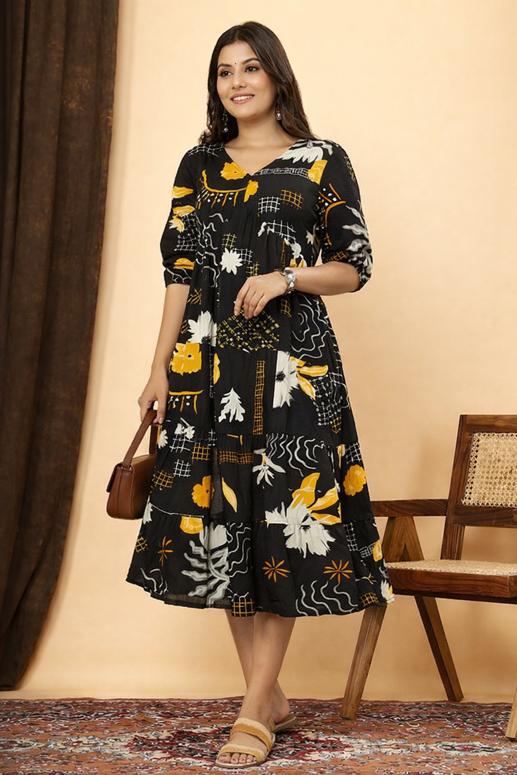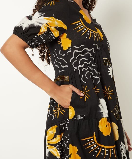 This Printed Black Dress for women is the perfect choice to elevate your wardrobe with a touch of timeless beauty. Featuring a sophisticated black base adorned with an eye-catching printed design, this dress combines style with versatility for any occasion.