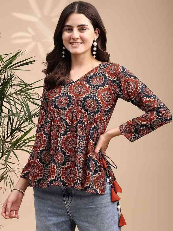 Crafted using soft, breathable fabric, this printed maroon Kurti is tailored to provide a flawless fit while ensuring maximum comfort throughout the day. The solid maroon color adds a touch of timeless grace, allowing you to pair it effortlessly with a range of accessories and bottoms like palazzos, leggings, or jeans.