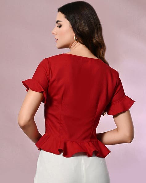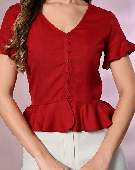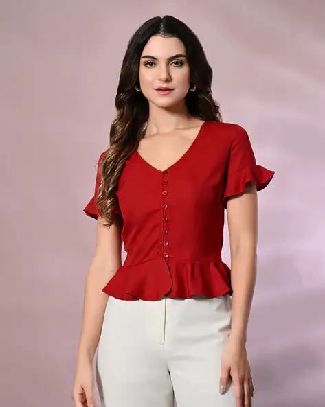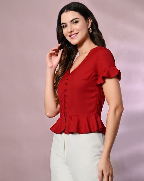 The vibrant red hue adds a touch of sophistication and plays beautifully with various accessories and outfits. Pair it with jeans for a casual vibe or complement it with tailored trousers for an office-ready look. This versatile top ensures you’ll make a statement wherever you go.